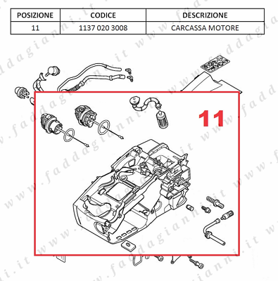Carcassa motore o carter originale STIHL per Motosega MS 192 T completa di: Tappi, prigioniero, filtro e tubo olio.